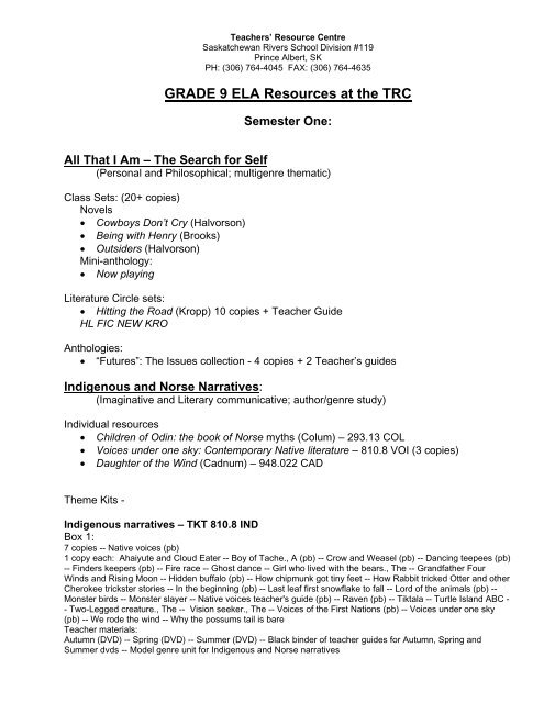 Grade 9 Ela Resources At The Trc Saskatchewan Rivers School